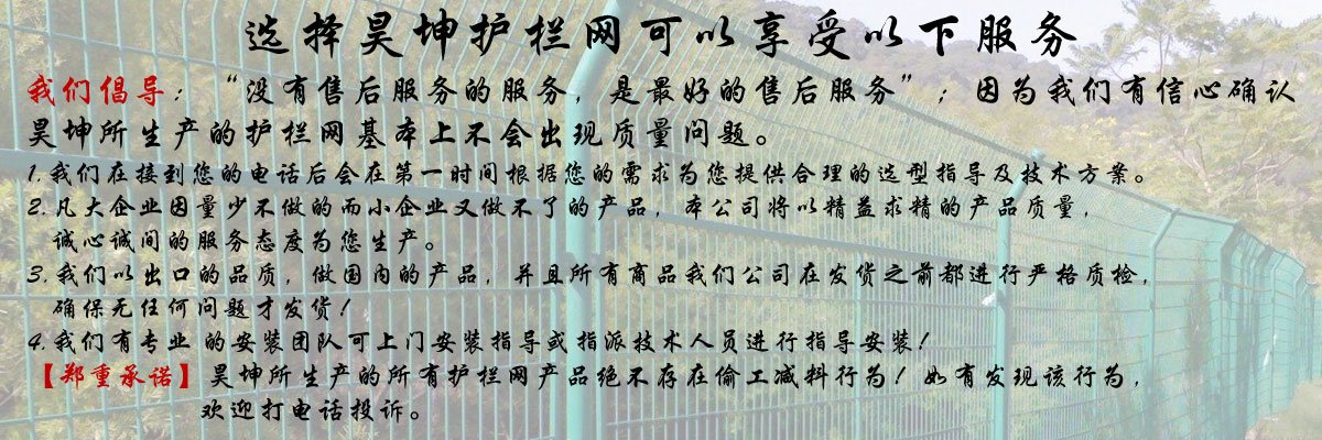 公司擁有先進(jìn)的生產(chǎn)設(shè)備,高標(biāo)準(zhǔn)的表面處理技術(shù),以及嚴(yán)格的質(zhì)量管理標(biāo)準(zhǔn)。我們堅(jiān)持以創(chuàng)造優(yōu)質(zhì)產(chǎn)品為理念,堅(jiān)持以產(chǎn)品品質(zhì)為先,始終執(zhí)著于產(chǎn)品創(chuàng)新,努力開(kāi)拓國(guó)內(nèi)外市場(chǎng)。公司產(chǎn)品廣泛應(yīng)用于工業(yè)園區(qū)圍墻防護(hù),市政道路安全隔離,城市綠化工程等多方面領(lǐng)域,并與多家大中型建筑單位和部門(mén)建立了長(zhǎng)期固定合作關(guān)系。